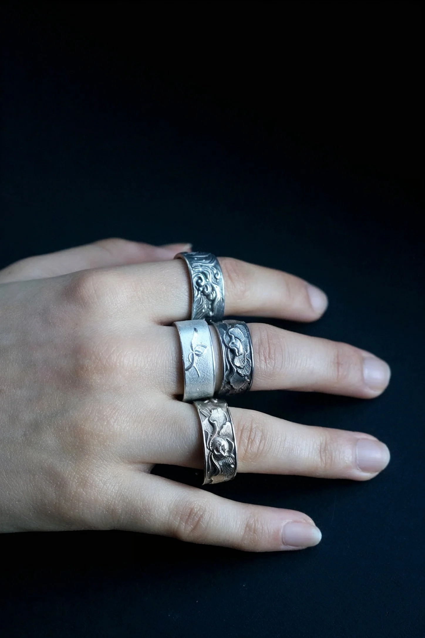 Explore handmade collections of rings, necklaces, and earrings. Drawn from both the raw and refined, this work blends the mark of a makers hand with fine metals and gemstones to form pieces that have an individual aesthetic and narrative.